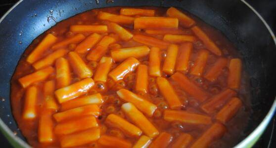 用料:年糕300克、韩式辣酱15克、清水大半碗、食用油适量。