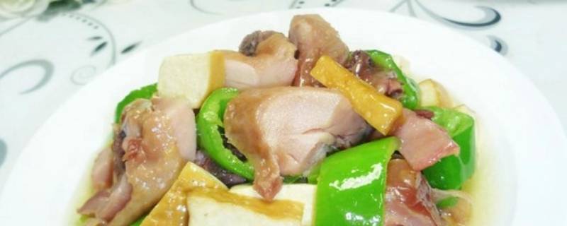 1、将青椒切开去蒂去籽清洗一下,放在案板上切开,香干放在案板上切开,腊鸡腿放在案板上剁成小块。