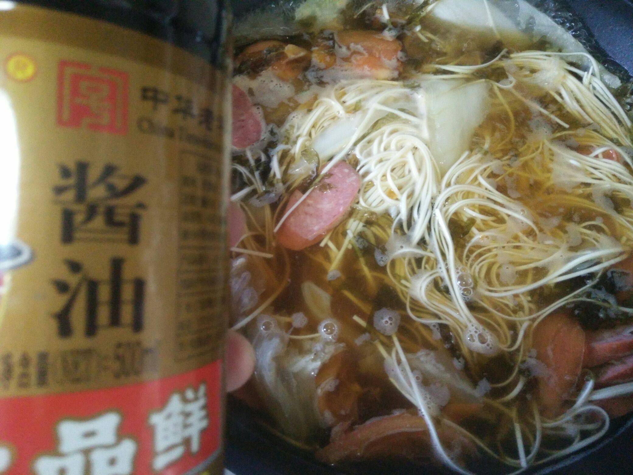 1、准备材料:挂面适量、白菜适量、西红柿一个、紫菜适量、虾皮适量、香肠半根、盐适量、鸡精适量、葱花适量、香菜适量。