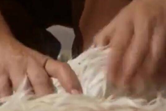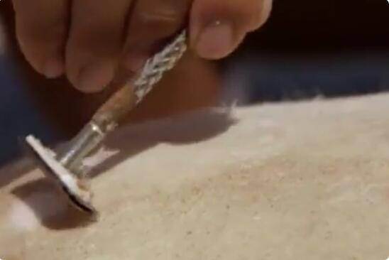 3、闻到臭味后,把羊皮取出来,然后把上面的羊皮剃光;