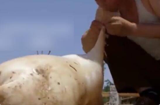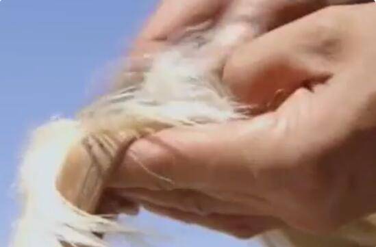 5、吹胀后把最后一只羊脚绑起来,再把羊毛刮干净;