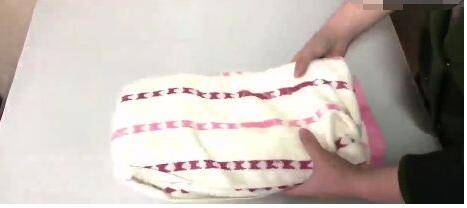 然后将羊毛围巾放到干净的大毛巾中,最后,用大毛巾把羊毛围巾包好放入洗衣机甩干。