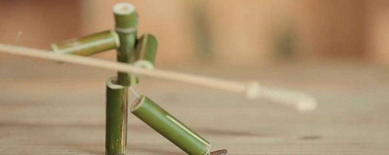 需要材料:小刀、竹节、绳子、小棍、扣子。