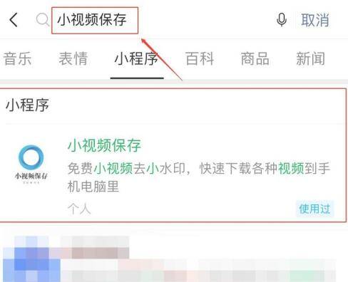 3、在微信搜索框里搜索“小视频保存”小程序。