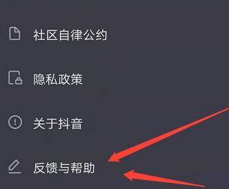 4、点击“反馈与帮助”选项,在“关于”模块的第五行中。
