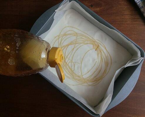 倒入酸奶,大约1cm的厚度就可以啦,不需要太厚。