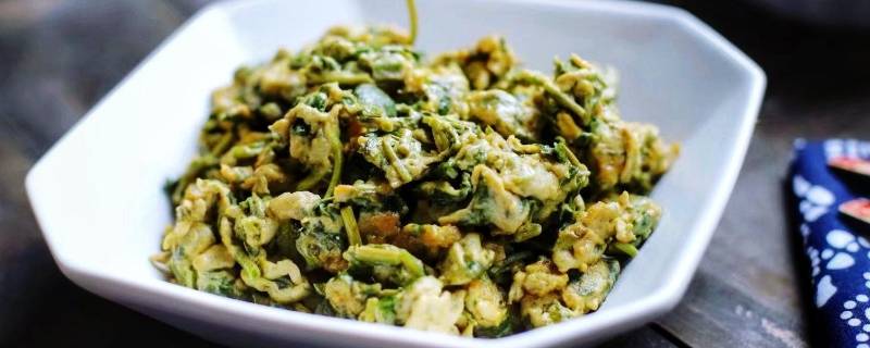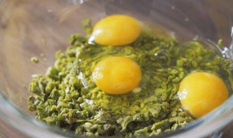 最佳答案用料:香椿100克、鸡蛋4个、酱油10毫升、色拉油适量。1、锅中适量水煮沸,放入香椿焯水。2、入锅后香椿会立刻变成翠绿的颜色,焯水20秒左右即可捞出。3、焯水后的香椿过一下凉水。4、香椿控水后,去掉根部,切碎后放入碗中。5、加入4个鸡蛋。6、用筷子把蛋液搅拌均匀。7、再调入10毫升生抽增味,蛋...