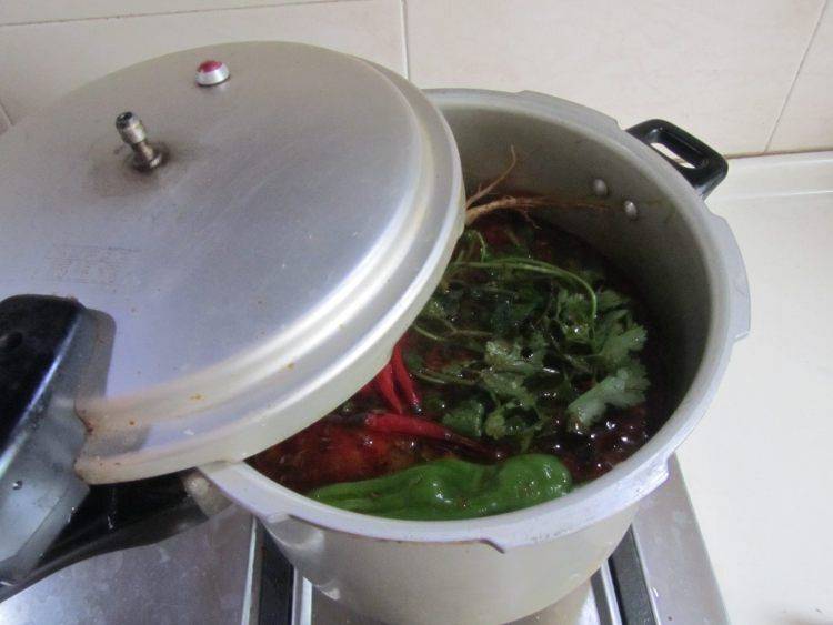5、盖上盖,大火高压锅阀叫了后转为小火炖煮25分钟。