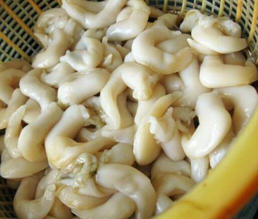 鲜活的鸟贝去壳取肉,洗净备用 。