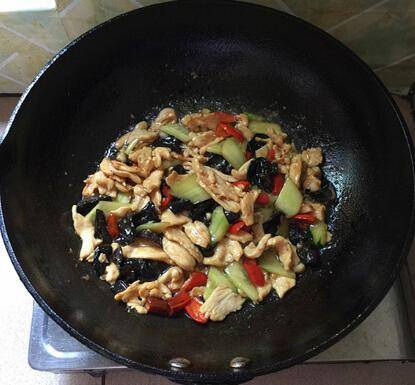 主料:鸡胸肉1块、黑木耳10克、黄瓜100克、红椒2个(红椒不辣,起配色作用)。辅料:大蒜10克、生抽20毫升、料酒10毫升、玉米淀粉3克、蚝油20毫升、精盐3克、原味鲜1克、食用油30毫升。