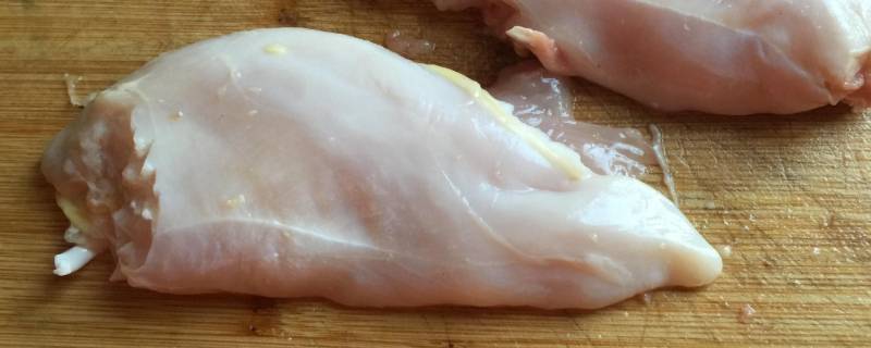 锅中注入食用油,5成热的时候,下鸡胸肉。