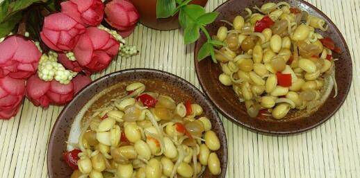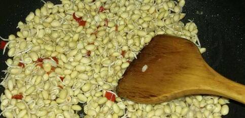 黄豆芽300g、剁辣椒适量、蒜末适量、盐、酱油、糖。锅底爆香蒜末,放剁辣椒炒香,放黄豆芽炒出香味,放少量水炖五分钟。放酱油、盐、糖炒匀调味,大火收汁即可出锅。