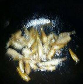 4.锅内加少量油中火煎香、捞出备用。