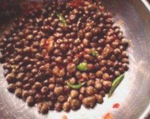 4、待山药豆炸熟后捞出,锅中留适量油。