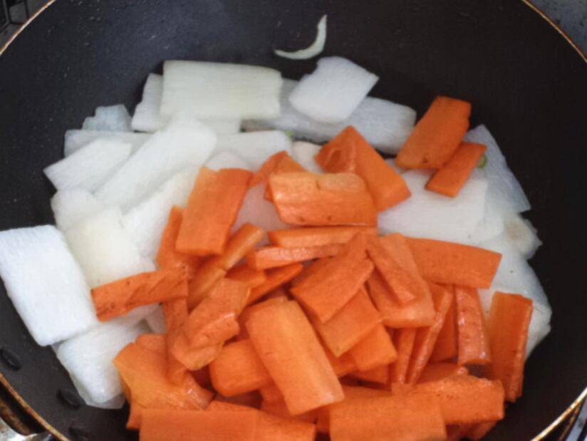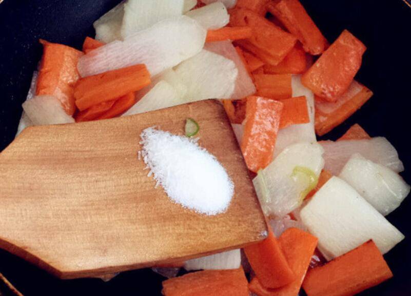 主料:胡萝卜150克、山药200克、橄榄油适量、味精适量、盐适量、葱姜适量。