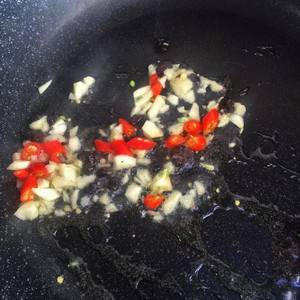 3、炒锅烧热油,爆香蒜末辣椒豆豉。