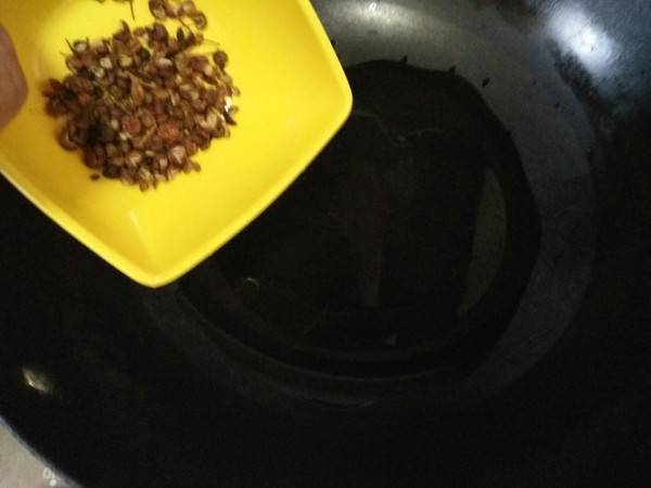3、起油锅放花椒爆香。