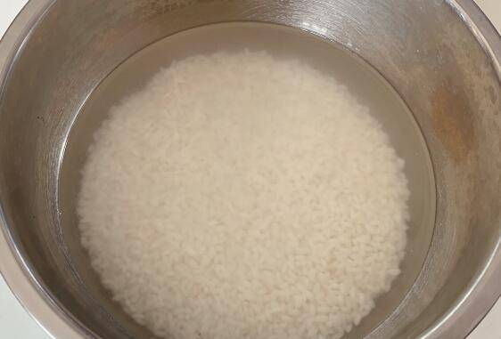 1、大米清洗干净后,加入没过大米的清水,浸泡半小时。