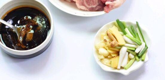 梅头肉500克、蒜头3颗、姜一块、糖4大勺、盐1勺、现磨黑胡椒1克、生抽4大勺、料酒3大勺、蚝油2大勺、蜂蜜3大勺。