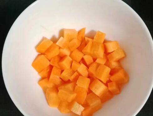 3、胡萝卜去皮切丁。