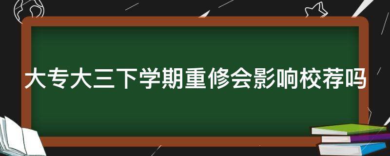 大专大三下学期重修会影响校荐,但重修过了,对高校推荐生的评定就不会有太大影响。大学考试某一门课未通过(一般是必修),下一个学年重新上这门课,并重新考试称为重修。当一位同学在期末考试中有多科不及格,在下一学期开学第一周给予补考机会。若该同学在补考期间把不及格的科目补考及格则不需要重修,但假如有超过一定数目的学科还不及格则要重修这些课程。或者在四年下来还有没过的科目,则在毕业前需要重修并参加考试及格后才予以毕业。重修需要交纳一定的重修费。重修分为插班重修和开专门的重修班组两种。