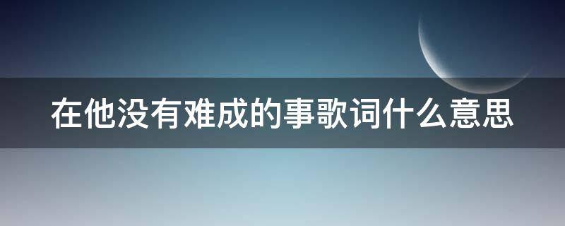 在他没有难成的事歌词意思是对于神,没有任何事是大问题。《在他没有难成的事》是由盛晓玫演唱的歌曲,收录于盛晓玫2006年发行专辑《有一天》中。歌词是诗歌的一种,入乐的叫歌,不入乐的叫诗(或词)。入乐的歌在感情抒发、形象塑造上和诗没有任何区别,但在结构上、节奏上要受音乐的制约,在韵律上要照顾演唱的方便,在遣词炼字上要考虑听觉艺术的特点,因为它要入乐歌唱。