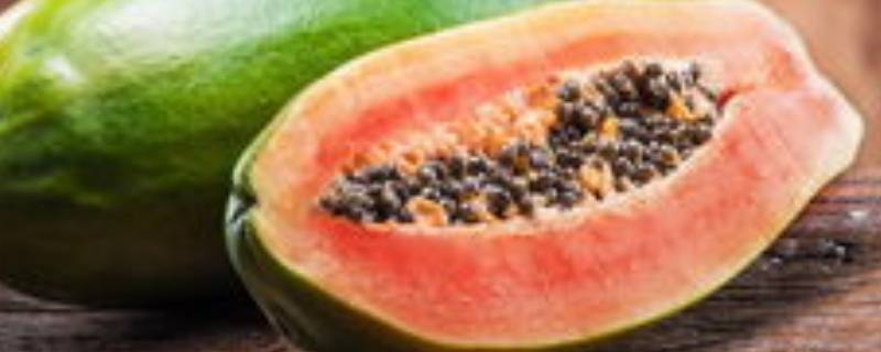 番木瓜又称木瓜、乳瓜、万寿果,为热带、亚热带常绿软木质小乔木,高达8-10米,具乳汁;茎不分枝或有时于损伤处分枝,具螺旋状排列的托叶痕。果实长于树上,外形像瓜,故名之木瓜。番木瓜的乳汁是制作松肉粉的主要成份。花果期全年。