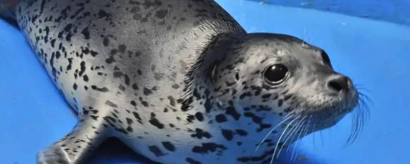 海豹是对鳍足亚目种海豹科动物的统称。海豹体粗圆呈纺锤形。全身披短毛,背部蓝灰色,腹部乳黄色,带有蓝黑色斑点。头近圆形,眼大而圆,无外耳廓,吻短而宽,上唇触须长而粗硬,呈念珠状。四肢均具5趾,趾间有蹼,形成鳍状肢,具锋利爪。后鳍肢大,向后延伸,尾短小而扁平。毛色随年龄变化,幼兽色深,成兽色浅。