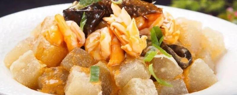 2、油热把凉粉倒入锅里煎炒,凉粉煎起焦倒入葱末、蒜末、盐搅拌。
