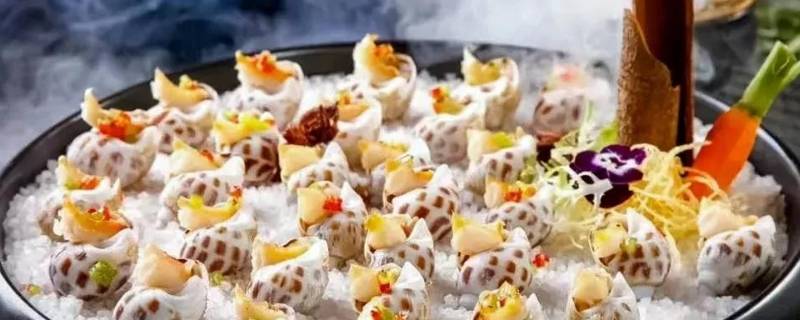 洗干净的花螺均匀摆放在粗盐上