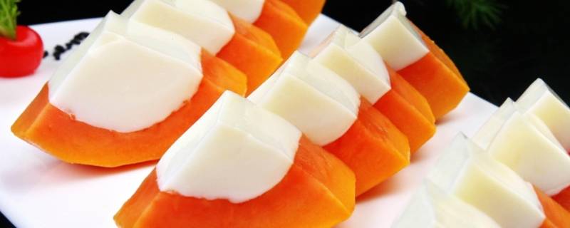 用料:木瓜一个、牛奶200克、椰子粉15克、白糖15克、吉利丁片15克。