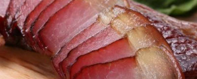 2、熏腊肉切开。