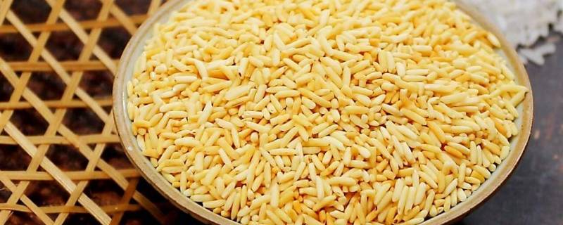 大米两量杯、食用油一点。将大米淘好,放在厨房纸上平均分散开,沥干水分。锅内滴入几滴油,倒入大米翻炒。炒至大米金黄,凉后即可开吃。
