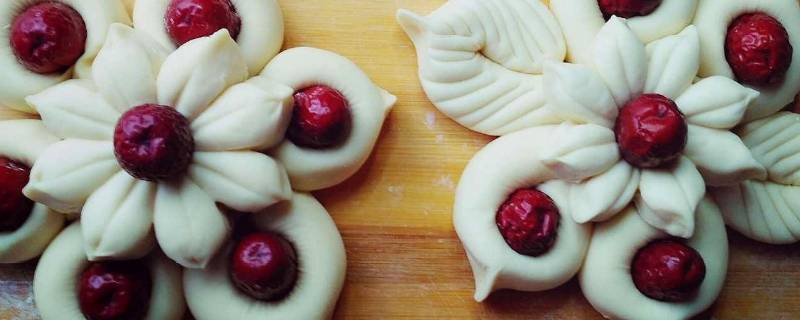 将切开的部分捏起来,形成一朵花的形状,最后在顶上摆上一颗枣。