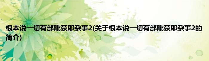1、 《根本说一切有部毗奈耶杂事2》是一本武侠小说,作者是义净。