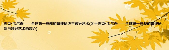 本文关于杰克·韦尔奇——全球第一总裁的管理秘诀与领导艺术的简介就讲解完毕,希望对大家有所帮助。