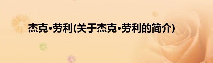 大家好,杰克·劳利,关于杰克·劳利的简介很多人还不知道,现在让我们一起来看看吧!