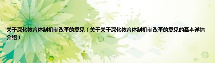 本文关于关于深化教育体制机制改革的意见的基本详情介绍就讲解完毕,希望对大家有所帮助。