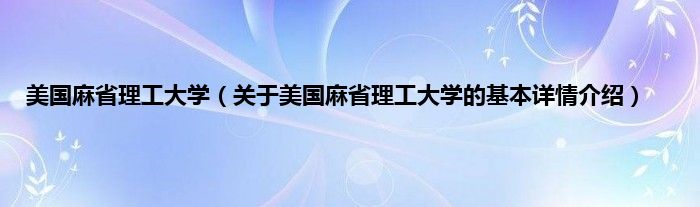 本文关于美国麻省理工大学的基本详情介绍就讲解完毕,希望对大家有所帮助。