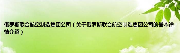 本文关于俄罗斯联合航空制造集团公司的基本详情介绍就讲解完毕,希望对大家有所帮助。
