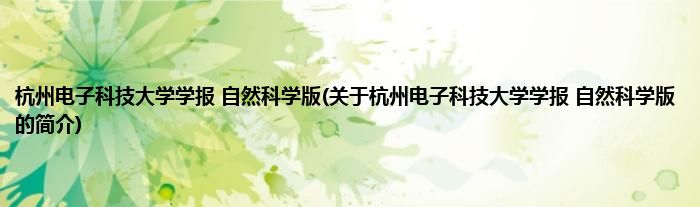 大家好,杭州电子科技大学学报 自然科学版,关于杭州电子科技大学学报 自然科学版的简介很多人还不知道,现在让我们一起来看看吧!
