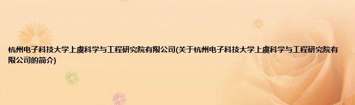 大家好,杭州电子科技大学上虞科学与工程研究院有限公司,关于杭州电子科技大学上虞科学与工程研究院有限公司的简介很多人还不知道,现在让我们一起来看看吧!