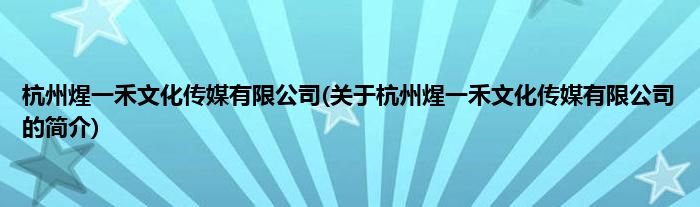本文关于杭州煋一禾文化传媒有限公司的简介就讲解完毕,希望对大家有所帮助。