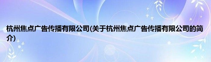 本文关于杭州焦点广告传播有限公司的简介就讲解完毕,希望对大家有所帮助。