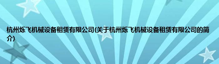 本文关于杭州烁飞机械设备租赁有限公司的简介就讲解完毕,希望对大家有所帮助。