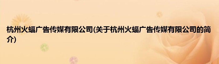 本文关于杭州火蝠广告传媒有限公司的简介就讲解完毕,希望对大家有所帮助。