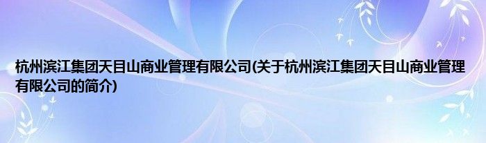 本文关于杭州滨江集团天目山商业管理有限公司的简介就讲解完毕,希望对大家有所帮助。