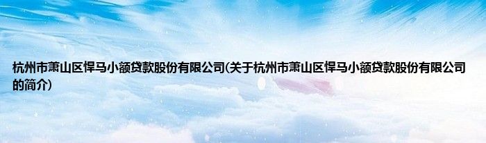 本文关于杭州市萧山区悍马小额贷款股份有限公司的简介就讲解完毕,希望对大家有所帮助。
