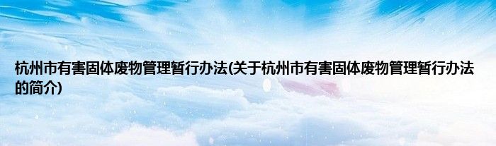 本文关于杭州市有害固体废物管理暂行办法的简介就讲解完毕,希望对大家有所帮助。