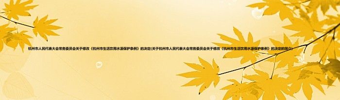 杭州市人民代表大会常务委员会关于修改《杭州市生活饮用水源保护条例》的决定(关于杭州市人民代表大会常务委员会关于修改《杭州市生活饮用水源保护条例》的决定的简介)